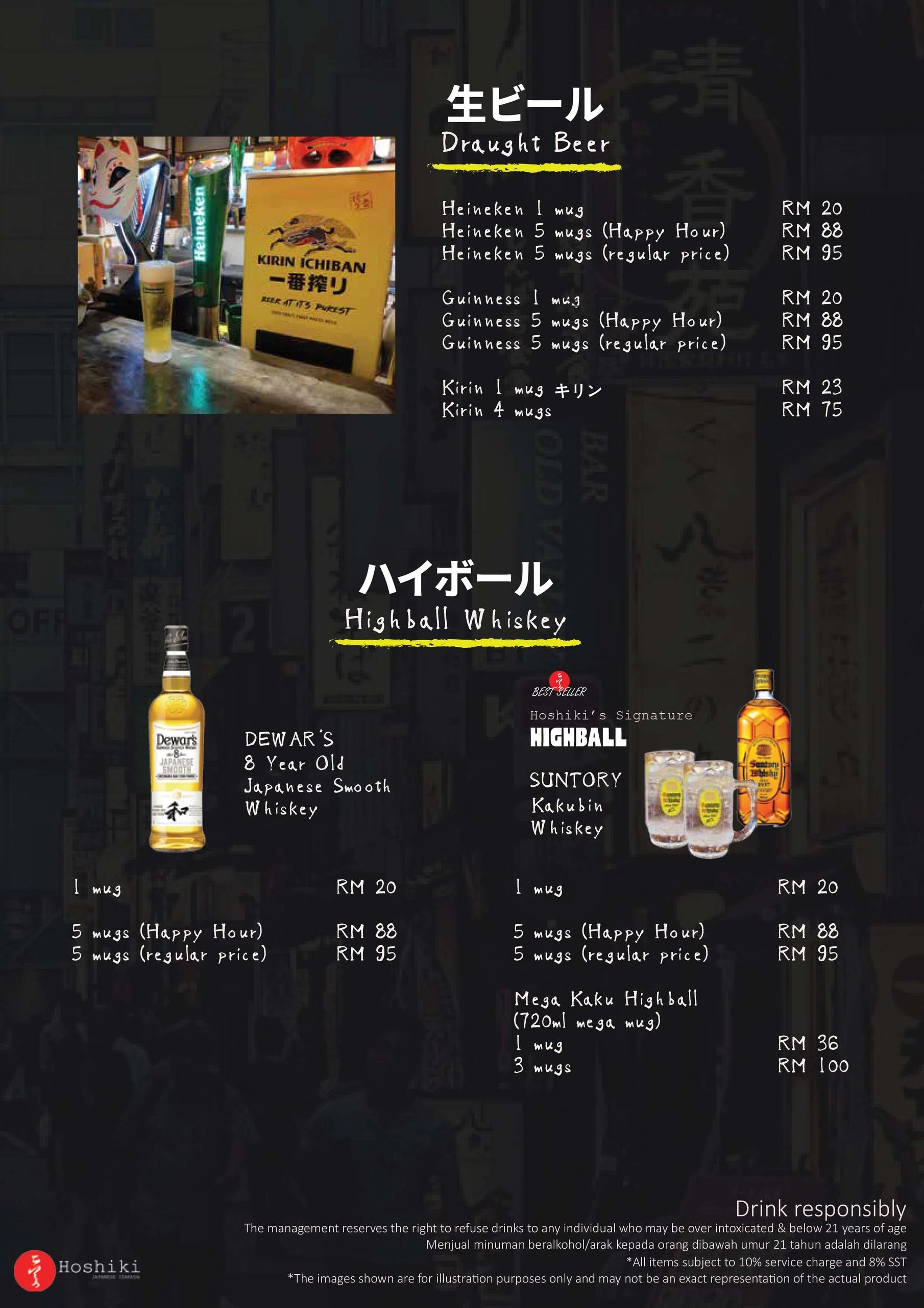 Japanese Cocktails, Sochu, Sake, Gin & Whiskeys